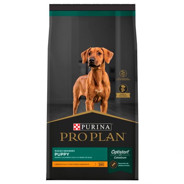 Alimento para perros de razas grandes hecho a base de pollo, elimina la “brecha inmunológica” y provee nutrición completa que ayuda a los cachorros a crecer fuertes y sanos.